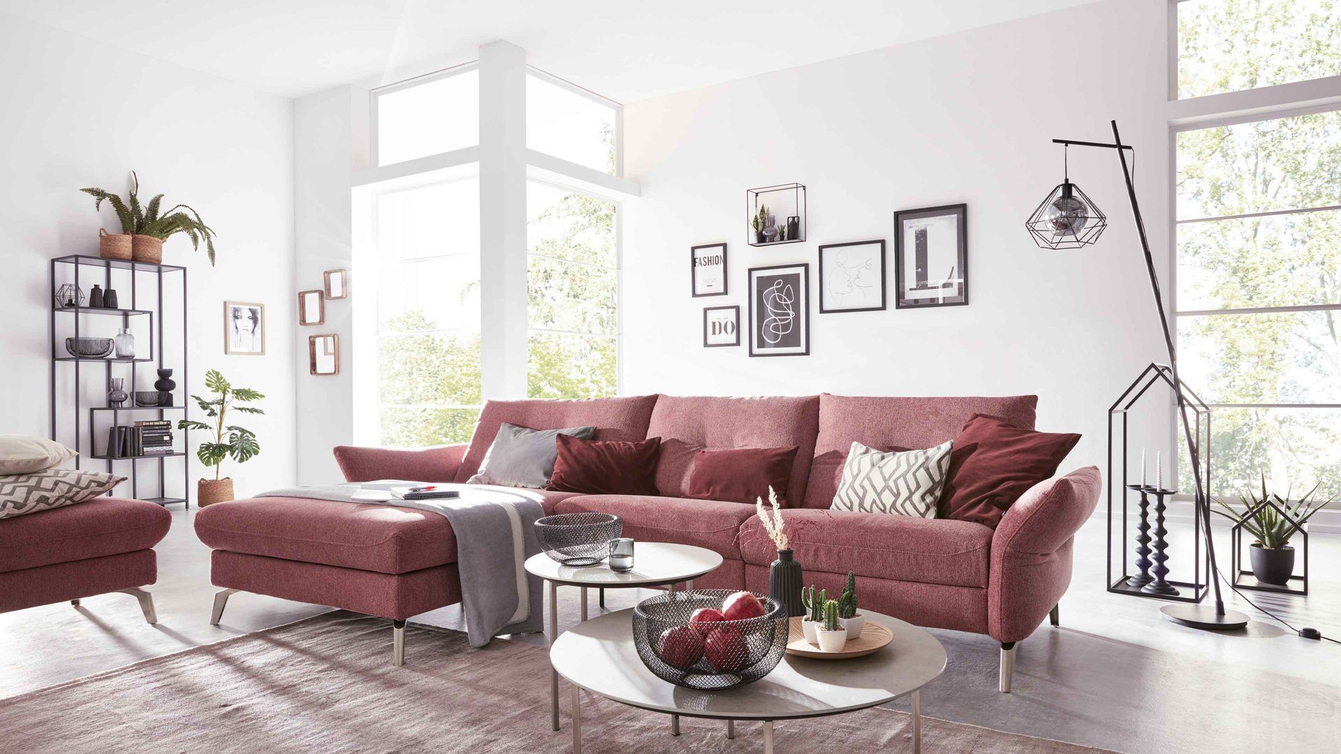 Mit dem pastellvioletten Bezug strahlt das Ecksofa aus der Interliving Sofa Serie 4400 kreative Eleganz und wohlige Wärme aus. Edelstahlfarbene Metallfüße runden das moderne Design stilvoll ab und überzeugen überdies mit ihren robusten und stabilen Eigenschaften. Die gesteppte Rückenlehne setzt einen gelungenen Akzent und verleiht der Couch das gewisse Etwas. Für hohen Sitzkomfort sorgt neben der angenehmen Haptik des Stoffes insbesondere die hochwertige Polyätherschaumpolsterung auf stützender Wellenunterfederung. Zu den funktionalen Höhepunkten gehören die praktisch klappbaren Armlehnen, die sich durch ihre Funktion auch gut als Kopfstützen bei erholsamen Powernaps verwenden lassen. Die erstklassige Eckkombination besteht aus der Chaiselongue 850-102 mit Armlehne links und dem zweisitzigen Anbausofa 220-164 mit Armlehne rechts. Ihre Stellfläche beziehungsweise das Schenkelmaß beläuft sich auf ca. 163 x 296 cm (BxL, von links nach rechts), bei einer Sitzhöhe von ca. 46 cm und einer Sitztiefe von ca. 52 cm. Dank der ca. 16 cm hohen Füße ergibt sich eine große Bodenfreiheit, die genügend Platz für einen Saugroboter bietet. Die stoffbezogenen Rückseiten ermöglichen es Ihnen, die Eckcouch frei im Raum zu platzieren, da sie ein rundum harmonisches Erscheinungsbild sicherstellen. Gegen Mehrpreis sind Komfort-Funktionen ergänzbar, wahlweise mit Trafo oder Akku. Prinzipiell geht die Interliving Sofa Serie 4400 mit zahlreichen Optionen zur Individualisierung einher. Die edle Polsterecke ist mit drei verschiedenen Sitzqualitäten sowie mehreren Fuß- und Armteilvarianten lieferbar. Zudem profitieren Sie von einer attraktiven Stoff- und Lederauswahl. Das Programm ist mit dem Goldenen M ausgezeichnet und hat 5 Jahre Herstellergarantie.